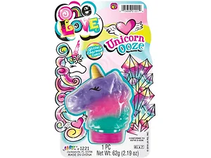 The Unicorn Ooze Slime offers endless fun and sensory exploration for kids! This vibrant, glittery slime can be stretched, pulled, and squished to provide hours of entertainment. Packaged in a whimsical unicorn-shaped bottle, this slime features an enchanting ombre design of purple, hot pink, and turquoise. Each bottle contains 2.19 ounces of this magical ooze, making it perfect for playtime or as a unique gift. Comes packaged in a convenient hanging blister card.
