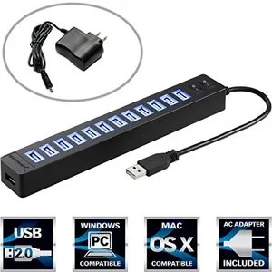 Sabrent 13-Port USB 2.0 Hub with Power Adapter - USB - External - 13 USB Port(s) - 13 USB 2.0 Port(s)