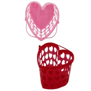 Bulk Buys HB898 Heart-Shaped Gift Basket with Handle in Pink or Red