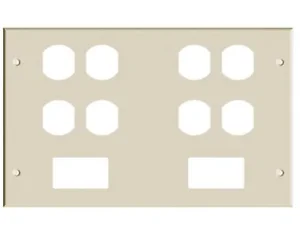 The HBL6750 Series 6-Gang Cover Plate is designed for versatility and convenience. It accommodates 4 Duplex Receptacles and includes 2 Ortronics Series II Mini Adapter Bezels, making it ideal for both electrical and communication needs. Compatible with 15A and 20A Duplex Receptacles, this cover plate is perfect for various installations.