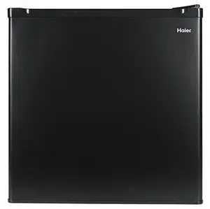The Haier 1.7 Cubic Feet Refrigerator/Freezer features door space to hold 2 Liter Bottle Storage bottles. With one full-width Wire shelf, The refrigerator is easy to position with its adjustable leveling legs and has a flat-back design to help save space. Your refrigerator will automatically maintain the temperature level you select. The temperature control dial has 7 settings plus "0" - 1 is the warmest, 7 is the coldest. Black.