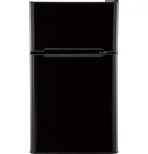 Haier 3.2 cu ft 2-Door Refrigerator Black. It features a separate True-Freezer Compartment for frozen food storage, which is cold enough to keep ice or ice cream from melting. This Haier two-door refrigerator has two easy-to-clean, full-width interior glass shelves that are designed for holding eggs, butter or other foods, and a clear crisper with a glass cover that will keep your fruits and vegetables fresher. The spacious door storage accommodates up to two 2-liter bottles of soda. It has Dispense-a-Can storage that fits six cans in a vertical formation and makes it easy to grab one whenever you're thirsty. This unit is an excellent option for use in a dorm room, game room, studio apartment or camper. It's also very useful to install in a smaller office so employees can share a lunch space. Its attractive black finish complements many existing decor styles and prevents the components inside from rusting. from rusting.