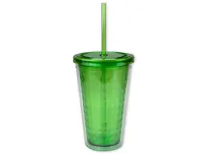 Bulk Buys HC354 Green 18 oz Double Wall Diamond Pattern Tumbler with Straw