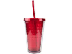 Bulk Buys HC355 Red Double Wall Diamond Pattern Tumbler - 18 oz with Straw