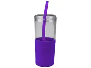 Stay refreshed by the poolside or on the go with this stylish 21-ounce Purple tumbler. Featuring a durable silicone straw, it's perfect for enjoying your favorite iced tea or chilled water.