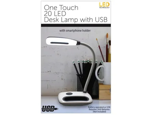 Powered by a USB connection or an optional rechargeable battery, this lamp offers versatility for any setting. With a built-in smartphone holder, you can keep your device close at hand while you work. Experience lighting that adapts to your needs, all packaged in a stylish design.