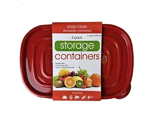 This set of 4 BPA-Free Plastic Food Containers is ideal for meal prepping, storing leftovers, and taking food to gatherings. Each container features a clear body with a red snap-close lid, making it easy to see contents while ensuring freshness. They stack neatly together for efficient storage, keeping your kitchen organized. Perfect for any occasion, these containers are designed for convenience and durability!