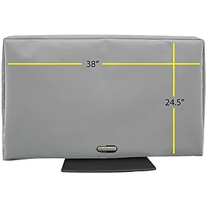 Protect your investment from the elements with this Solaire SOL 38G 38"-43" Outdoor TV Cover. It's made of marine-grade materials with a soft, non-abrasive, lined interior fabric to prevent scratching and other damage. This patio TV cover is water-, sun- and mildew-resistant and designed specifically for an articulating bracket or freestanding applications. It also features a bracket mud flap to protect the rear bracket opening and two zippers that provide a secure closure. This Solaire SOL 38G 38"-43" Outdoor TV Cover comes in a light, neutral color to reduce heat build-up and includes an interior pocket for storing your remote. It offers year-round protection in any weather, allowing you to enjoy watching TV on your deck, by your pool, from your hot tub or anywhere outdoors.