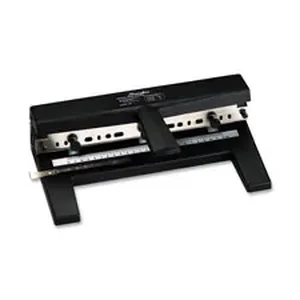The Swingline Heavy-Duty Adjustable Center Hole Punch is designed for reliable performance and durability. With its robust construction, this punch can handle up to 50 sheets at a time, making it ideal for high-volume use in offices or classrooms. The adjustable punch heads allow for precision drilling of 9/32" holes, and the easy-to-use design ensures accurate positioning with every punch.
