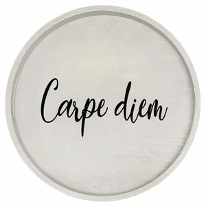 Enhance your home decor and entertain with style using our Gray Wash Round Wood Serving Tray. This beautifully crafted tray features a rustic gray finish and elegant scripted black text, making it the perfect addition to any themed, seasonal, or holiday decor. Create that cozy farmhouse feel in your home while serving breakfast in bed or presenting food and drinks at your next gathering.