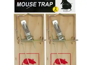 Effectively eliminate pesky mice with our Classic Spring-Loaded Wooden Mouse Trap Set. This two-pack set features durable wooden bases and powerful spring mechanisms for quick and efficient trapping. The traps are easy to set up and use, making it an ideal choice for your home or business.
