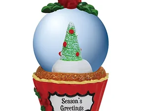 The words "Season's Greetings" are elegantly displayed on the base, with decorative holly at the top. When you shake the globe, watch as the glitter gently swirls around, adding a magical touch to your Christmas tree.
