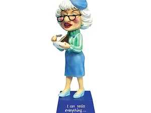 Add a touch of humor to your home or office with the Biddys 'Cake' Figurine. This charming piece features a resin figurine of an old woman delightfully indulging in a slice of cake. The figurine is placed on a vibrant blue platform, adorned with the witty phrase, "I can resist everything...except temptation."