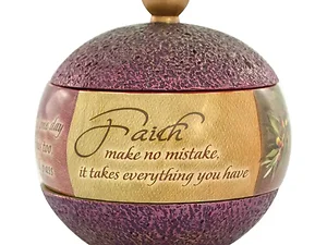 Add a touch of tranquility to your home with the Elegant Olive Branch Tealight Holder and Trinket Box. This beautifully designed 3-piece set features delicate olive branch prints and inspiring phrases 'faith' and 'believe'. The box includes a lower compartment ideal for storing charms, prayers, or treasured trinkets, a stylish middle section for tealights, and a textured lid with a convenient round handle. A natural wax tealight candle is included to enhance the ambiance.