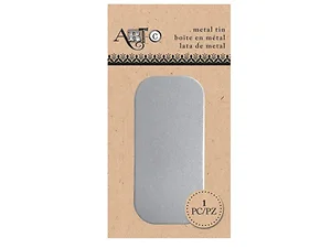 Create personalized gift boxes, candy containers, or keepsake tins with this Mini Metal Hinged Craft Tin. Its sleek and simple design allows for endless creativity. Measuring approximately 1.5" x 0.75" x 3.25", this tin is perfect for small treasures. Each tin is packaged in a poly bag with a header card for easy display.