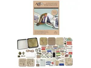 The kit includes everything you need to create one beautiful book. Inside the tin, you'll find 1 accordion book, 154 decorative embellishments, and twine for binding. The packaging is designed to hang, making it an eye-catching addition to any craft display.