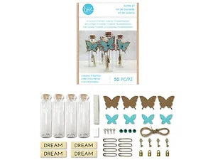 Create your own beautiful and decorative message bottles with the DIY Decorative Butterfly Bottle Craft Kit. This comprehensive kit includes a variety of craft pieces to help you design four unique embellished glass bottles.