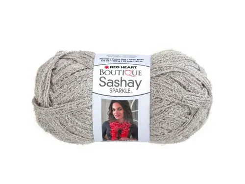 Bring a touch of elegance to your crafting with the Sparkling Grey Sashay Yarn. This luxurious yarn features a light grey netted design adorned with a sparkly silver edge, perfect for creating stunning scarves and accessories.