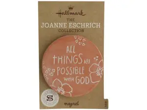 Add a touch of inspiration to your home or office with this charming terracotta magnet. Engraved with the uplifting message, 'All Things Are Possible with God', this round magnet also features delightful flower and heart decorations.