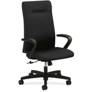 Executive high-back chair is designed to provide comfortable support for those who spend more than half the day at their desk or computer. As part of the HON Ignition Seating Series, this chair is perfect behind a desk or around a conference table. Functions include pneumatic seat-height adjustment from 17" to 21" , ratchet back-height adjustment, 360-degree swivel, tilt, tilt tension and tilt lock. Design also features fixed arms, Centurion fabric upholstery in black, a five-star base and swivel casters. Distance between arms is 20". Seat size is 20" wide x 18" deep. Usable seat depth is 17". Back measures 20" wide x 25" to 28" high. Weight capacity is 300 lb. High-back chair meets or exceeds applicable ANSI/BIFMA standards.