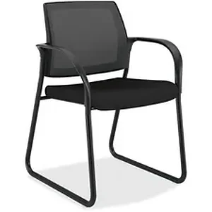 Whether people are waiting in the reception area or meeting with employees at their workstations, this guest chair gives them the first-class treatment they deserve, showing them they're valued and appreciated. Ignition seating fits all body types from the 5th to the 95th percentile. Fully coordinated with other HON Ignition seating to make it easy to add and expand throughout the office, this guest chair offers a contoured, ilira-stretch mesh back to mold to your guest's body and a comfortable seat cushion with Centurion fabric upholstery in black. Sled-base frame includes nylon glides for stable seating and sloping arms. Durable frame is made of sturdy steel for long-lasting use. Weight capacity is 300 lb.