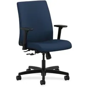 This Ignition low-back task chair gives you total control over both the look and the feel of your seating. A natural reclining mechanism and adjustable back height are designed to fit your body and your unique posture preferences. Deeply sculpted lumbar support cradles the lower back. Functions include pneumatic seat-height adjustment from 17" to 21-1/2" , 360-degree swivel, tilt, tilt tension and tilt lock. Arms adjust in height and width to put the upper body support right where you need it. This task chair is the office assistant that will help take the pressure and stress off even the longest day at work. Centurion fabric upholstery color is navy, and frame color is black.