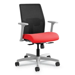 Mid-back work chair is designed to provide comfortable support for those who spend more than half the day at their desk or computer. Breathable mesh back delivers responsive seating for exceptional comfort. Arms adjust in height and width to adapt to various body sizes. Functions with simple, understandable controls include pneumatic seat-height adjustment from 17-1/2" to 22" high from the floor, seat-glide mechanism, back-height adjustment, 360-degree swivel, dual-action synchro tilt, and tilt tension. Synchro-tilt allows the back to recline twice as fast as the seat. As the back reclines, the seat remains relatively level, promoting leg circulation and ergonomic function. Design also features Centurion black fabric upholstery on the seat, a five-star base and swivel casters. Weight capacity is 300 lb. Mid-back chair meets or exceeds applicable ANSI/BIFMA standards.