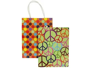 Brighten up any celebration with this vibrant 5-piece All Occasion Gift Bags Set. These durable paper bags come in a delightful assortment of designs, including colorful circles, peace signs, polka dots, and solid colors, ensuring there's a perfect match for every gift.
