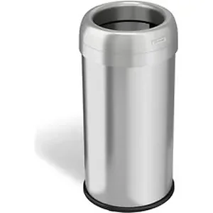16-Gallon Round Open Top Trash Can features a wide opening to easily accommodate large and bulky items. Heavy-duty, activated carbon filters keep odors out of the surrounding area. Brushed, stainless steel body is fingerprint-proof and wipes down easily for quick cleanings. Open-top design eliminates exposure to surface bacteria. Air vents allow effortless trash bag removal to prevent rips and tears. Convenient carry handle allows quick, easy transportation. Trash can is perfect for lobbies, dining areas, stores and more.