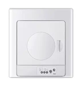 Haier 2.6 CF Portable Electric Vented Dryer. Electronic Control provides precise control of your appliance, giving the confidence that it will perform with optimal results. Indicators show the operating status of the machine. Wall Mountable portable dryer takes up no floor space with the option to mount on the wall and can be placed above a portable washing machine. Temp Dryness Sensor automatically determines when clothes are dry, saving energy and protecting clothing from over-drying. More Easy-To-Use Features incude Zinc Coated Steel Drum, Electronic Control, 3 Auto Dry Cycles(Heavy Duty, Normal, Delicate), Timed Dry Cycle, 5 Timed Dry Settings, 3 Temperature Settings, End-of-Cycle Signal, Cycle Progress LEDs (Red), Check Filter Indicator, Interior Lint Filter, Uses a Standard 3-Prong Outlet, Requires 120V, 60Hz. 6ft cord. White.