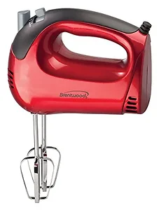 Use the ergonomic and powerful150w Brentwood HM-46 Lightweight 5-Speed Electric Hand Mixer to easily beat eggs, whip cream, mix light batter and more for extended periods of time. Control speed and eject beaters with one hand. Dishwasher safe beaters are made from durable chrome plated metal. Hand mixer conveniently rests on its heel.