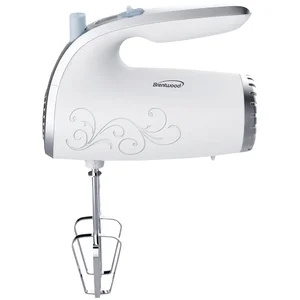Mixing ingredients has never been easier! make your ultimate best dishes with great results from this easy to use and lightweight Brentwood 5-Speed Hand Mixer in White. The elegant design is a sure fit for your kitchen collection. The compact design enables easy handling while in use with the ergonomic handle. A powerful 150W motor for long lasting durability, ejection beater button for easy cleaning, and dishwasher safe beaters.