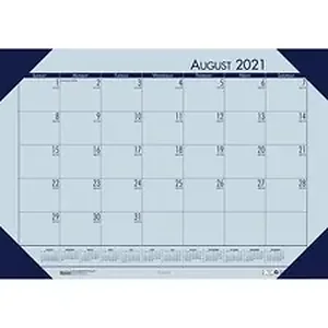 Desk pad offers a compact size for your workstation or home office. 12 months of dated planning range from August to July. One-page-per-month format includes ruled daily blocks (2-1/4" x 1-7/8"), Sunday-through-Saturday scheduling, count of days/days remaining, holidays and a full-year calendar reference along the bottom. Nonrefillable desk pad has four leatherette corners to secure the planning pages. Pages are printed in soy ink and made from a high percentage of recycled material.