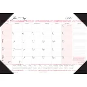Breast Cancer Awareness Desk Pad brightens your desktop every day with soothing pink and an inspirational quote. Part of the proceeds from this desk pad will be donated to breast cancer research. Dated one-page-per-month format includes ruled daily blocks (2-3/8" x 2-1/2"), a ruled section for notes, Sunday-through-Saturday scheduling, count of days/days remaining, holidays and full-year calendar reference along the bottom. Dated planning pages range 12 months from January to December. Calendar is printed in pink and gray soy inks and includes four clear vinyl corners to secure the pages.