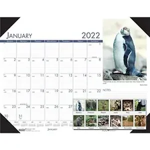 Desk pad features an eye-catching wildlife photo as well as an interesting quote below the image. Dated planning pages range 12 months from January to December. One-page-per-month format includes unruled daily blocks (2" x 2-1/4"), Sunday-through-Saturday scheduling, numbered weeks, notes space, full-year reference calendar along the bottom, holidays and count of days/days remaining. Desk pad also offers four reinforced, black leatherette corners to secure planning pages. Paper is printed in soy ink on paper made with a high percentage of recycled material.