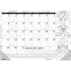 Academic Black and White Doodle Monthly Desk Pad Calendar is the perfect desk pad for those who like to color. Color in the beautiful designs while you talk on the phone, waiting on hold or any free moment. Dated planning pages range 12 months from August to July for easy planning. One-page-per-month format features ruled blocks (2-3/8" x 1-7/8"), Sunday-through-Saturday scheduling, ruled notes section, count of days/days remaining, holidays and full 12-month reference along the bottom. Strong black corners at the bottom and glued top keep pages in place and protected. Calendar pages are printed on recycled, FSC certified paper with soy inks.