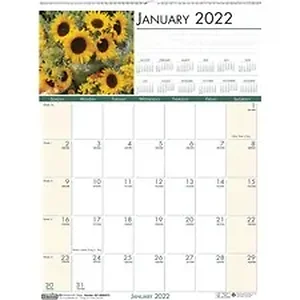 Wall calendar features a full-color photo of a beautiful flower and the current month on each page for soothing planning. Each month includes unruled daily blocks (1-1/2" x 2"), Sunday-through-Saturday scheduling, numbered weeks, full-year reference calendar and count of days/days remaining. Dated planning pages range 12 months from January to December and offer strong wire binding with an eyelet for easy hanging. One-page-per-month wall calendar is printed with soy ink on FSC certified paper made with a high percentage of recycled material.