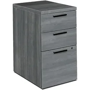 Mobile pedestal belongs to the HON 10500 Series Desking that features well-built, cost-effective wood furniture that is the perfect solution for a growing business. Freestanding pedestal with smooth, flat edges can be used alone or fits neatly under 24" to 36" deep shells for desks, returns and credenzas that are at least 29-1/2" high. Easily roll the pedestal where you need it on hidden, 2" diameter casters. Use the box drawer and file drawer to stay organized and store supplies and hanging files. File drawer includes built-in hangrails for letter-size and legal-size filing. Both drawers lock with a core-removable lock and roll smoothly on ball-bearing suspension with full extension. Durable, thermal-fused, Sterling Ash laminate resists scratches and stains. Pedestal is certified by SCS to be in compliance with specific, indoor, air-quality emission requirements and meets or exceeds ANSI/BIFMA and ISTA performance standards.