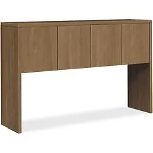 Stack-on storage with four doors adds overhead storage and is designed for use with HON 10500 Series credenzas and desks. This series offers well-built, cost-effective wood furniture for a growing business. Square edges and full modesty panels give this series a clean, streamlined look. Durable, easy-care, thermal-fused laminate resists scratches and stains. This stack-on storage is equipped with self-closing, adjustable hinged doors and valance to hide your task light. All furniture units are sold separately. Furniture is certified by SCS to be in compliance with specific, indoor, air-quality emission requirements and meets or exceeds ANSI/BIFMA and ISTA performance standards.