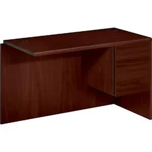 Right return is designed to attach to desks, credenzas and other components of the HON 10700 Series Laminate Wood Desk Collection. Use with the left-pedestal desk or peninsula to form an L-shaped workstation. Premium, multilayer, high-pressure, Mahogany laminate surface resists water, scratches and most solvents. Design also includes a full right pedestal with a box/file configuration, breakfront modesty panel and user-friendly waterfall edges. Locking drawers offer five-sided construction for easy drawer alignment or replacement of drawer fronts. Use the included hangrail for side-to-side letter-size and legal-size filing and front-to-back letter-size filing in the file drawer. Return also features two cord-management grommets on the worksurface for easy cord routing or anchor points for stack-on storage; one-cord, pass-through grommet in the modesty panel's top center; and adjustable, hex leveling glides for easy leveling.
