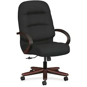 Executive high-back, swivel chair combines engineered durability with luxurious cushioning to create comfortable designs that last. Quality, visco-elastic memory foam in the seat cushion provides superb comfort. Memory foam reduces pressure points, responding to contours of the body for lasting comfort over extended-use periods. Chair design offers laminated hardwood with urethane top pads, loop arms, five-star base with wood caps, and fully upholstered outer back. Dual-wheel, hooded casters roll effortlessly and silently. Functions include pneumatic seat-height adjustment from 16-3/4" to 21-1/4" high from the floor, 360-degree swivel, tilt, tilt tension and tilt lock. Distance between arms is 22-1/2". Usable seat depth is 18-1/2". Seat measures 22" wide x 21" deep. Back size is 22" wide x 25" high. Chair is certified by SCS to be in compliance with specific air quality emission requirements and meets or exceeds ANSI/BIFMA and ISTA performance standards.