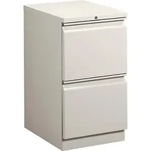 Mobile pedestal with HON Brigade Series 800 lateral-pull design fits under standard HON Initiate, 38000 Series and 29-1/2" worksurfaces. Freestanding pedestal offers a 22-7/8" depth and two file drawers with ball-bearing suspension (90 percent extension). High-sided file drawers feature two crossrails and accommodate front-to-back filing for letter-size, hanging file folders. Counterweight inhibits tipping when opening more than one drawer. Light gray pedestal is also equipped with a HON One Key interchangeable, core-removable lock; fixed front casters; and swivel rear casters. Pedestal meets or exceeds ANSI/BIFMA and ISTA performance standards.