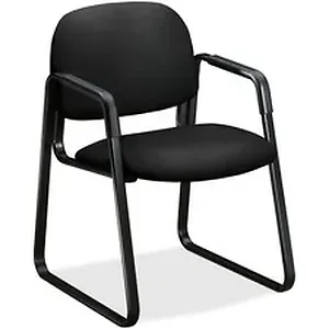 Solutions Seating from HON is a long-standing favorite with businesses everywhere. This sled-based guest chair features a floating backrest to give your spine maximum support. The floating back is also easy to keep clean with no crevices to catch crumbs. Seat and back are upholstered in black Centurion polyester fabric that features Nano-Tex soil-repellant and stain-repellant technology. Inner seat shell is molded from a wood composite with high recycled content. Arms offer additional comfort. Heavy-duty, black steel tube stands up to years of activity. Guest chair is ideal for supervisory, administrative, technical and lobby/guest functions. It comes fully assembled and ready to use.