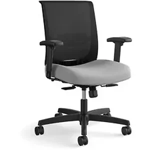 Convergence is the ideal chair for any office - a one-seat solution that can do it all. Intuitive, adjustable lumbar support provides lasting comfort during long workdays. It puts just the right amount of pressure on the lower back. With a clean, modern finish, the breathable mesh back panel in black flexes and responds to your movements. Advanced synchro-tilt control with seat slide supports any reclining position. The 3" thick seat cushion takes the stress off the lower body throughout the day. Arms adjust in height and width to put the support right where you need it. Other functions include pneumatic seat-height adjustment from 15-3/4" to 20" and tilt lock. Easily move from workstations to conference rooms using the integrated, full-width handle across the top. Durable frame sits atop a durable five-star base equipped with hard casters that move effortlessly on any surface. Frost fabric seat measures 20" x 19". Back size is 18" x 22". Weight capacity is 275 lb.