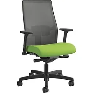 No matter who you are, how you work or where you work, Ignition seating from HON fits. Designed by Wolfgang Deisig, Ignition supports every body type, work style and office activity. Ignition Mesh Back Chair features an advanced synchro-tilt control mechanism and reclines just the way you like. Create the customizable comfort that perfectly fits you with adjustable lumbar and arms that adjust in height and width. Breathable, four-way stretch mesh back lets the air and the comfort flow freely. Tilt tension controls the rate and ease of recline. 360-degree swivel provides freedom of movement in any direction. Pneumatic seat-height adjustment moves the seat up and down to adapt to various body heights. Mid-back task chair is equipped with a five-star nylon base, hard casters for easy rolling and a black frame. Mesh back color is charcoal, and fabric seat color is Pear. Weight capacity is 300 lb.