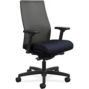 No matter who you are, how you work or where you work, Ignition seating from HON fits. Designed by Wolfgang Deisig, Ignition supports every body type, work style and office activity. Ignition Mesh Back Chair features an advanced synchro-tilt control mechanism and reclines just the way you like. Create the customizable comfort that perfectly fits you with adjustable lumbar and arms that adjust in height and width. Breathable, four-way stretch mesh back lets the air and the comfort flow freely. Tilt tension controls the rate and ease of recline. 360-degree swivel provides freedom of movement in any direction. Pneumatic seat-height adjustment moves the seat up and down to adapt to various body heights. Mid-back task chair is equipped with a five-star nylon base, hard casters for easy rolling and a black frame. Mesh back color is charcoal, and fabric seat color is navy. Weight capacity is 300 lb. Task chair assembles easily.
