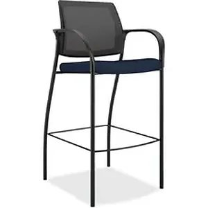Cafe-height stool gives your guests the first-class treatment they deserve, showing them they're valued and appreciated. Ignition seating fits all body types from the 5th to the 95th percentile. Cafe-height chair offers ilira-stretch mesh back to mold to your guest's body and a comfortable seat cushion with Centurion fabric upholstery. It is great for learning centers, cafeterias and common areas. Wall-saving leg design prevents the chair back from rubbing against nearby walls. Four-leg frame includes sloping arms, nylon glides for stable seating and 10" high footbar on all sides. Durable frame is made of sturdy steel for long-lasting use. Weight capacity is 300 lb. Seat size is 19" wide x 17" deep x 31" high. Back measures 18" wide x 18" high.