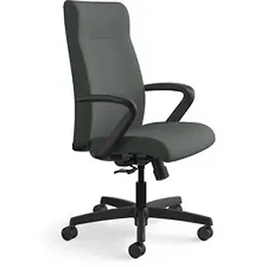 Executive high-back chair is designed to provide comfortable support for those who spend more than half the day at their desk or computer. As part of the HON Ignition Seating Series, this chair is perfect behind a desk or around a conference table. Functions include pneumatic seat-height adjustment from 17" to 21" , ratchet back-height adjustment, 360-degree swivel, tilt, tilt tension and tilt lock. Design also features fixed arms, Centurion fabric upholstery in Iron Ore, a five-star base and swivel casters. Distance between arms is 20". Seat size is 20" wide x 18" deep. Usable seat depth is 17". Back measures 20" wide x 25" to 28" high. Weight capacity is 300 lb. High-back chair meets or exceeds applicable ANSI/BIFMA standards.
