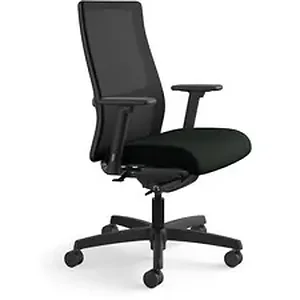 Mid-back work chair is designed to provide comfortable support for those who spend more than half the day at their desk or computer. Breathable mesh back delivers responsive seating for exceptional comfort. Arms adjust in height and width to adapt to various body sizes. Functions with simple, understandable controls include pneumatic seat-height adjustment from 17-1/2" to 22" high from the floor, seat-glide mechanism, back-height adjustment, 360-degree swivel, dual-action synchro tilt, and tilt tension. Synchro-tilt allows the back to recline twice as fast as the seat. As the back reclines, the seat remains relatively level, promoting leg circulation and ergonomic function. Design also features black polyurethane upholstery on the seat, a five-star base and swivel casters. Weight capacity is 300 lb. Mid-back chair meets or exceeds applicable ANSI/BIFMA standards.