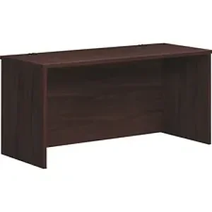 Credenza shell is part of the HON Foundation, a versatile collection of laminate desk and storage solutions that can be combined in a variety of ways to fit any work style or space. Combine with a Foundation desk shell, return shell, bridge and pedestals (all sold separately) for an L-station or U-station. Surfaces feature attractive, scratch-resistant, stain-resistant, Mahogany thermal-fused laminate for an unbeatable combination of stunning beauty and rugged durability. The durable top and end panels are 1" thick. Convenient cord management for the 60" wide credenza shell includes two black 3" cord grommets in the rectangular top and one cord pass-through grommet in the top center of full-height modesty panel. Adjustable floor-leveling glides provide 3/4" of adjustment.